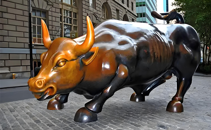 紐約曼哈頓的華爾街銅牛,無疑是全球最具影響力的銅牛雕塑之一。這尊由意大利裔藝術(shù)家阿爾圖羅?迪?莫迪卡創(chuàng)作于 1989 年的作品,重達(dá) 3.2 噸,以肌肉虬結(jié)的軀體、昂首前沖的姿態(tài),成為 “牛市” 的象征。其誕生背景頗具傳奇色彩:在 1987 年美股崩盤后,藝術(shù)家自掏腰包 36 萬美元鑄造銅牛,連夜安放在紐約證券交易所前的圣誕樹下,寓意 “經(jīng)濟復(fù)蘇”。盡管初期因 “非法放置” 引發(fā)爭議,但民眾對它的熱愛最終讓其落戶于百老匯大街,成為紐約的城市名片。2009 年,中國國旗首次在銅牛旁升起,見證了中美關(guān)系的深化;而 2019 年的搬遷計劃,則引發(fā)了全球?qū)ζ湮幕瘍r值的再思考。這尊銅牛不僅是金融市場的晴雨表,更傳遞著逆境中昂揚向上的信念。